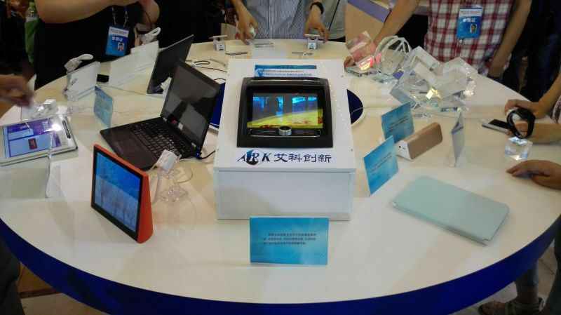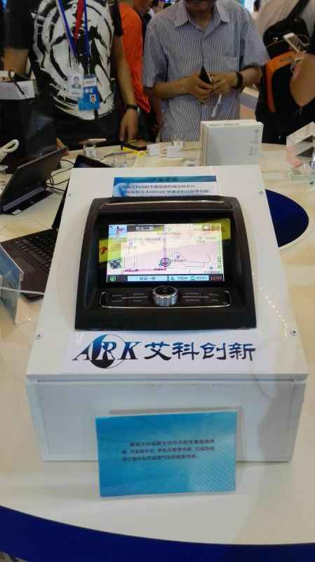 艾科创新的车载多媒体导航终端实现了与手机的互联互通,在展览现场引起了众多参观者的兴趣;艾科创新运用完全自主开发的核心芯片,成功研制的多功能车机,是展览现场唯一的一台车载多媒体导航终端。